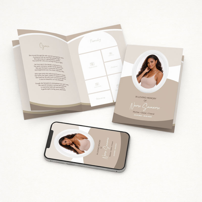 A modern women’s memorial design with contemporary elegance. Fully editable in Canva — no design experience required.